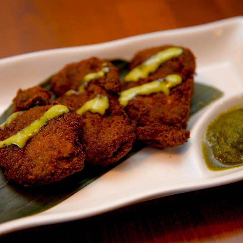 Chicken tenders, saffron, lemon, and ginger | Mint chutney