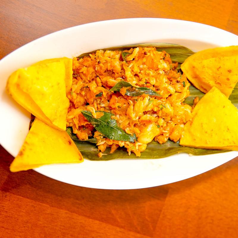 Potato and Onions / Goat cheese and spinach / Lamb Kheema / Crab